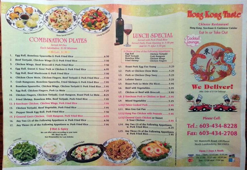 Introducing Hong Kong Taste, a gem located at 501 Mammoth Rd in Londonderry, NH, where every dish is crafted with love and attention to detail. Known for its authentic Chinese cuisine, this restaurant has earned a loyal following for its delightful offerings. Customers rave about the Crab Rangoon, praising it as a menu highlight, alongside the flavorful General Gau's Chicken and perfectly grilled Beef Teriyaki.